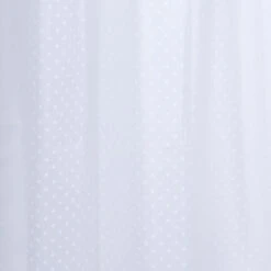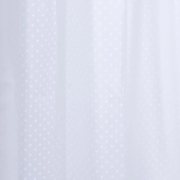 Dit witte douchegordijn van Differnz is voorzien van een patroon met witte stippen en past daarvoor perfect in een badkamer met gouden badkameraccessoires. Het gordijn is gemaakt van polyethyleen en is 2 meter breed.