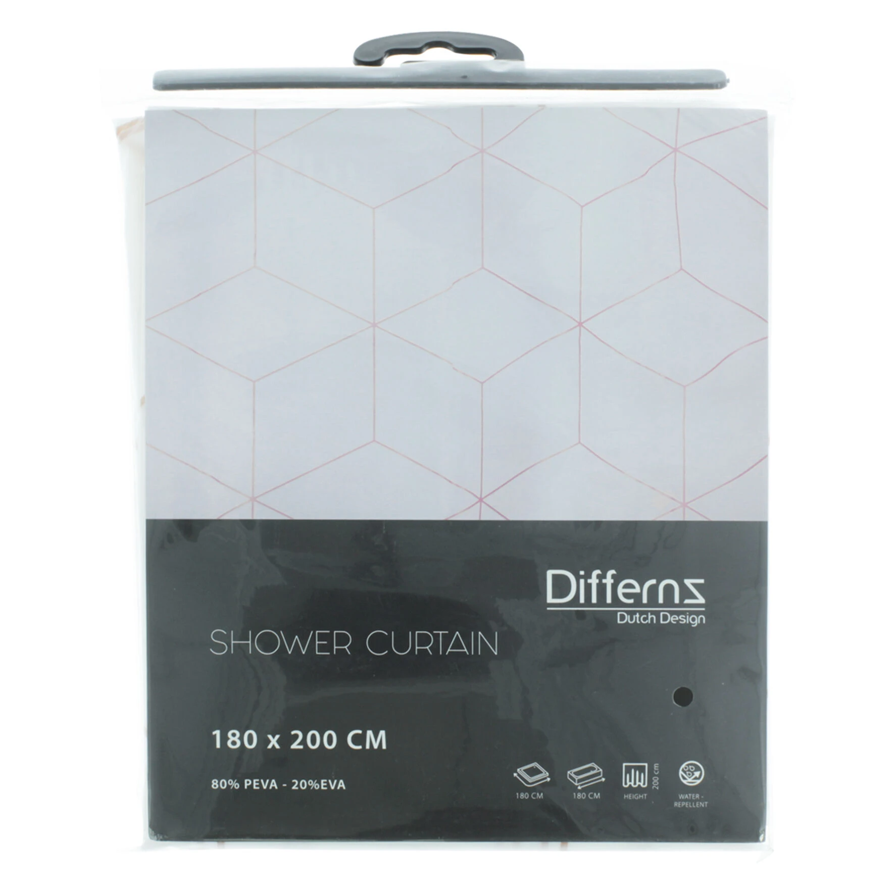 Dit douchegordijn van Differnz is voorzien van een geometrisch patroon met rode lijnen. Door de rode kleur is het douchegordijn mooi te combineren met koperkleurige badkamer accessoires. Het gordijn is gemaakt van polyethyleen en is 2 meter breed.