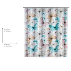Wenko PEVA Douchegordijn 180x200cm Vlinders Inclusief Ringen