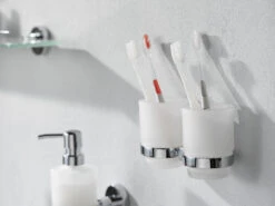 Grohe heeft een speciale lijn ontwikkeld voor badkamer- en toiletaccessoires. In deze lijn zit alles om jouw badkamer of toilet helemaal af te maken. In deze lijn zit ook deze trendy Grohe wandhouder. Deze Grohe wandhouder is multifuntioneel. Zo kan je een glas in de wandhouder zetten, maar ook een zeepdispenser. Met het strakke design past deze RVS wandhouder goed in een moderne of industriële badkamer.