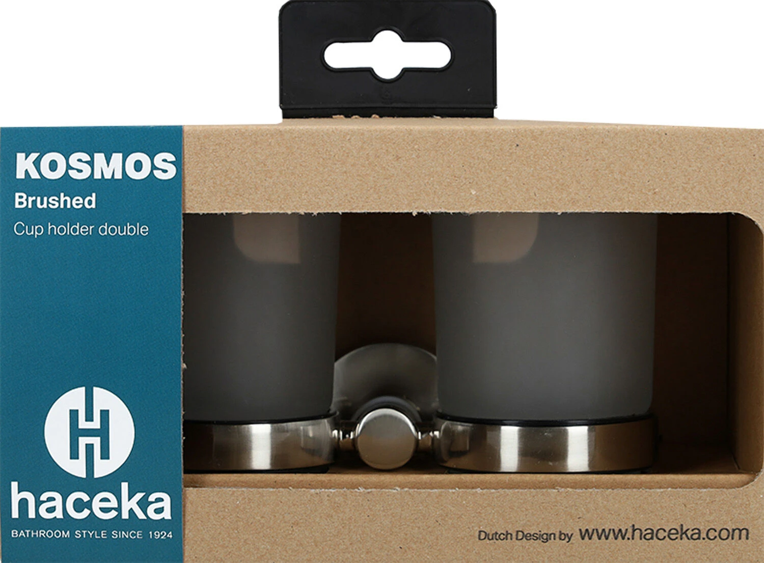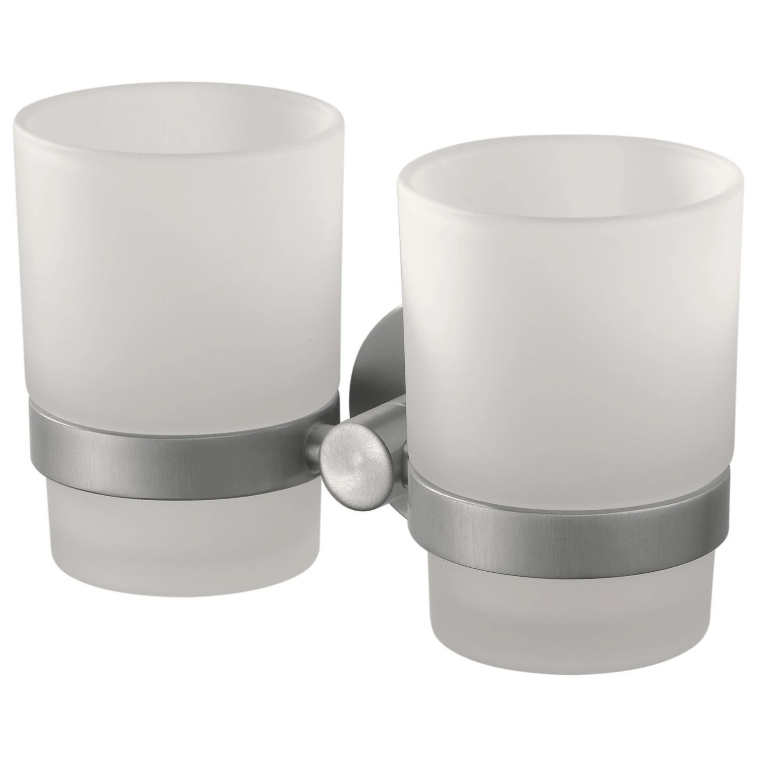 Wel zo makkelijk: deze dubbele glashouder van mat glas. Eén voor de tandenborstel, één om uit te drinken. Of gewoon: ieder een eigen glas. De bekers zijn makkelijk uitneembaar en gemaakt van mat glas. De bekers zijn getest en voldoen aan de Europese normen voor artikelen die met voedsel in aanraking komen. Dit betekent dat de bekers geen gevaarlijke stoffen afgeven en dat je er gegarandeerd veilig uit kunt drinken.