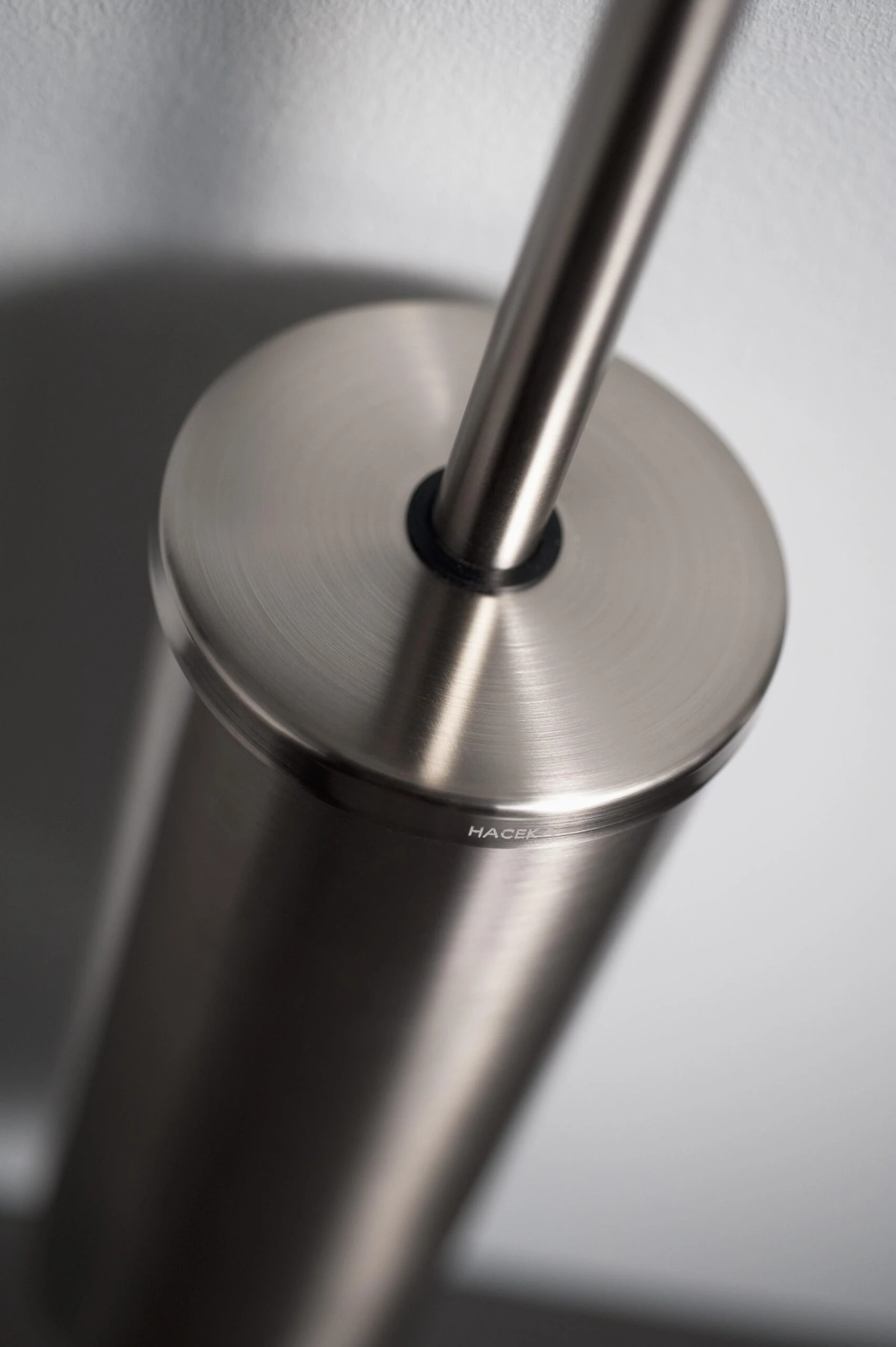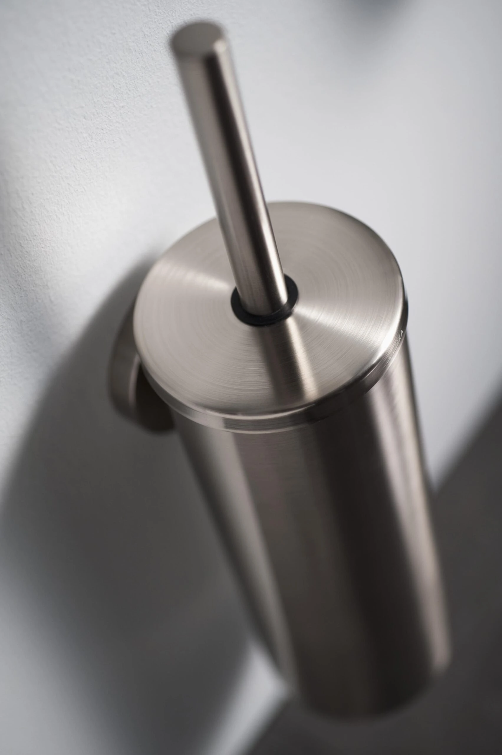 Toiletborstelset met een strakke, zakelijke uitstraling. De pot is zwaar verchroomd. De kunststof binnenpot is makkelijk uit te nemen. Opmerkelijk is ook het elegante design van de steel. Fraai en met een stevig houvast.