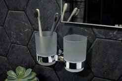 Je tandenborstels netjes opgeborgen, helemaal in de stijl van je badkamer? Dat kan met deze tandenborstelhouder van Hansgrohe. Deze tandenborstelhouder van Hansgrohe matcht perfect met de andere items uit de AddStoris serie. Doordat ‘ie ook in alle Hansgrohe kleurtjes verkrijgbaar is, is er altijd een houder die helemaal in jouw badkamer past. De houder is gemaakt van metaal, materiaal dat vochtbestendig is en ook tegen corrosie is bestand. Precies wat je wil natuurlijk boven je wastafel!
