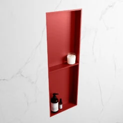 De nis komt in de kleur fire (rood). Door deze vurige kleur is de nis een echte eyecatcher in je badkamer.