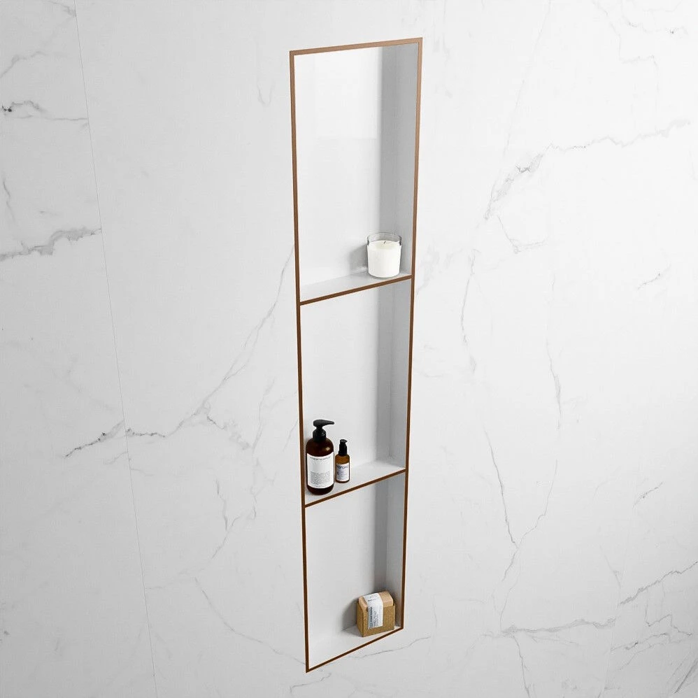 Met deze nis van Mondiaz creëer je de perfecte plek voor jouw shampoo en douchegel. De stijlvolle nis kan je zowel in de muur bouwen als rechtstreeks op de muur bevestigen. Zo staan al je spulletjes binnen handbereik. De nis is gemaakt van Solid Surface. Dit materiaal kent vele voordelen. Zo is het vocht- en vlekbestendig, eenvoudig te reinigen en het oppervlak ziet er altijd als nieuw uit. Ideaal dus! Bovendien is solid surface een milieuvriendelijk materiaal.Â