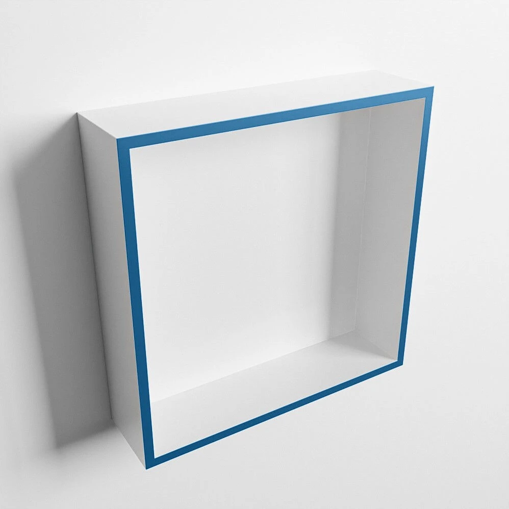 De nis heeft aan de buitenrand de kleur jeans (blauw) en aan de binnenkant de kleur talc (wit). De blauwe kleur geeft het de nis een tropische en frisse look. Perfect voor in de badkamer dus!