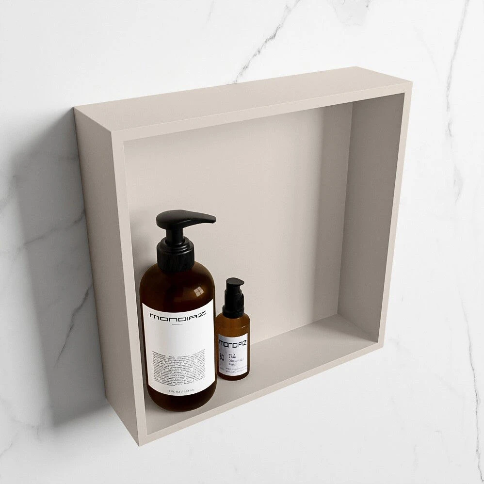 Met deze nis van Mondiaz creëer je de perfecte plek voor jouw shampoo en douchegel. De stijlvolle nis kan je zowel in de muur bouwen als rechtstreeks op de muur bevestigen. Zo staan al je spulletjes binnen handbereik. De nis is gemaakt van Solid Surface. Dit materiaal kent vele voordelen. Zo is het vocht- en vlekbestendig, eenvoudig te reinigen en het oppervlak ziet er altijd als nieuw uit. Ideaal dus! Bovendien is solid surface een milieuvriendelijk materiaal.Â