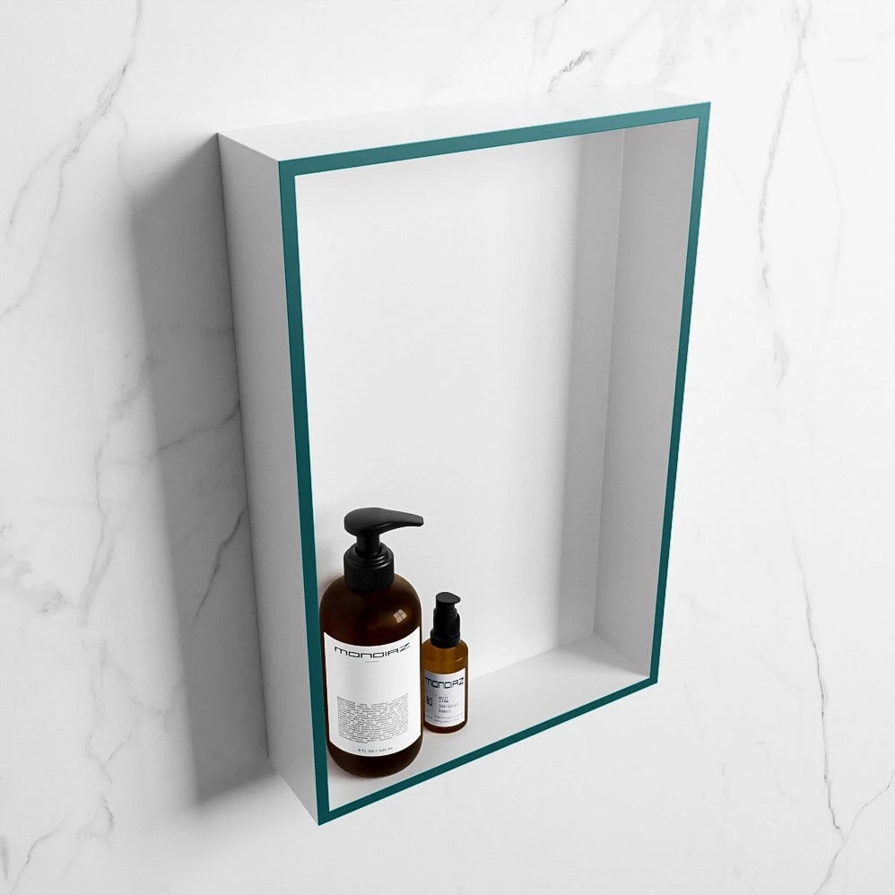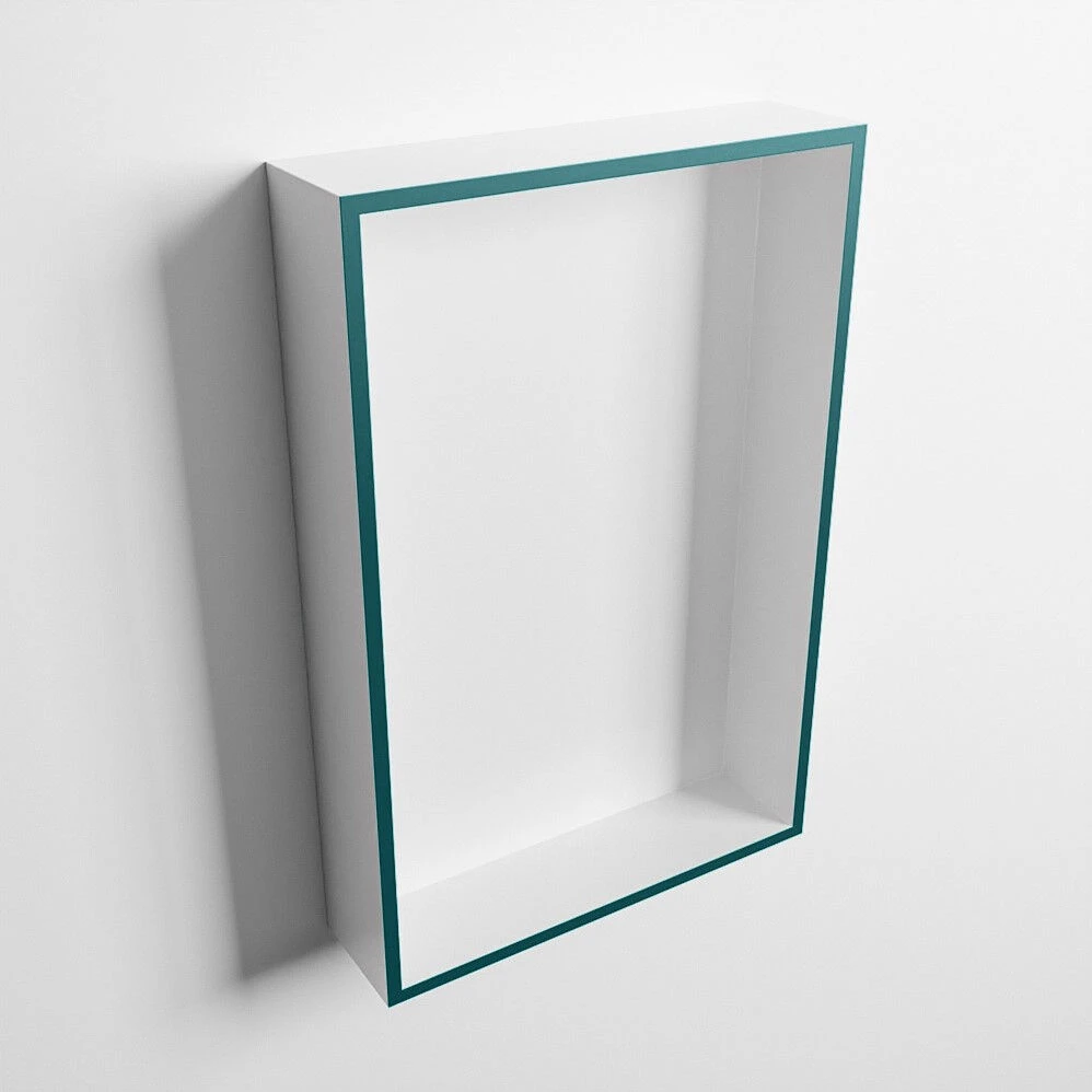 De nis heeft aan de buitenrand de kleur smag (turquoise) en aan de binnenkant de kleur talc (wit). De turquoise kleur geeft de nis een stijlvolle en trendy look.