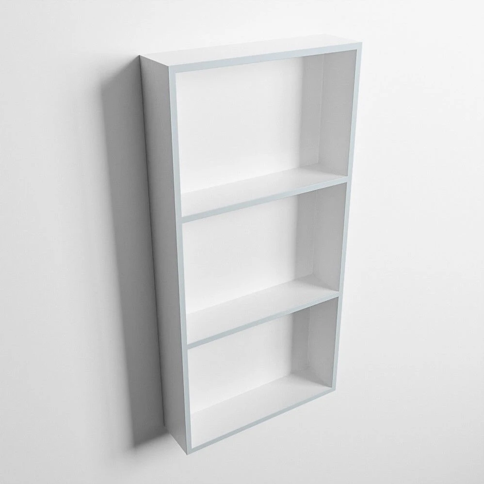 De nis heeft aan de buitenrand de kleur clay (licht grijs/blauw) en aan de binnenkant de kleur talc (wit). Deze combinatie van kleuren geeft de nis een frisse uitstraling.