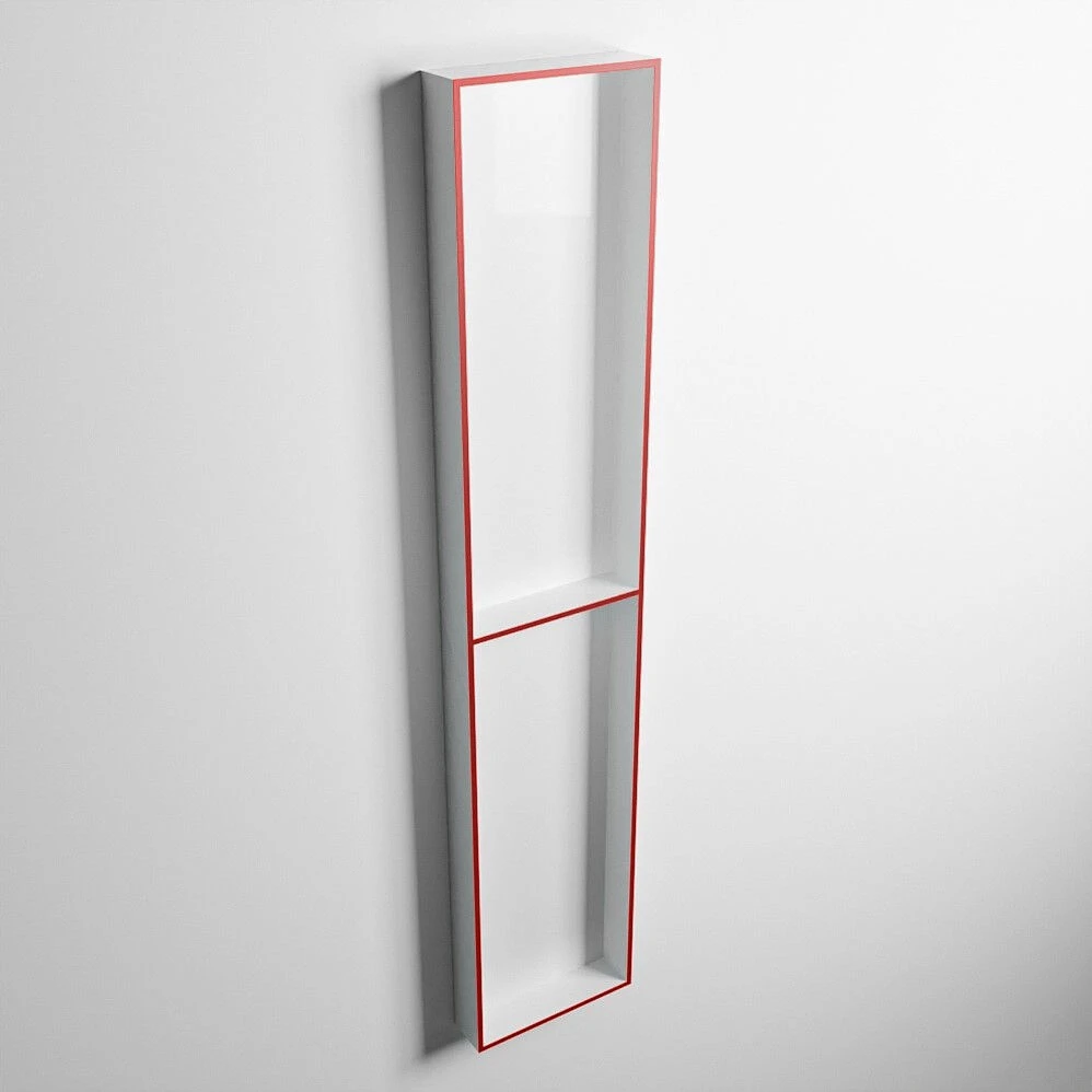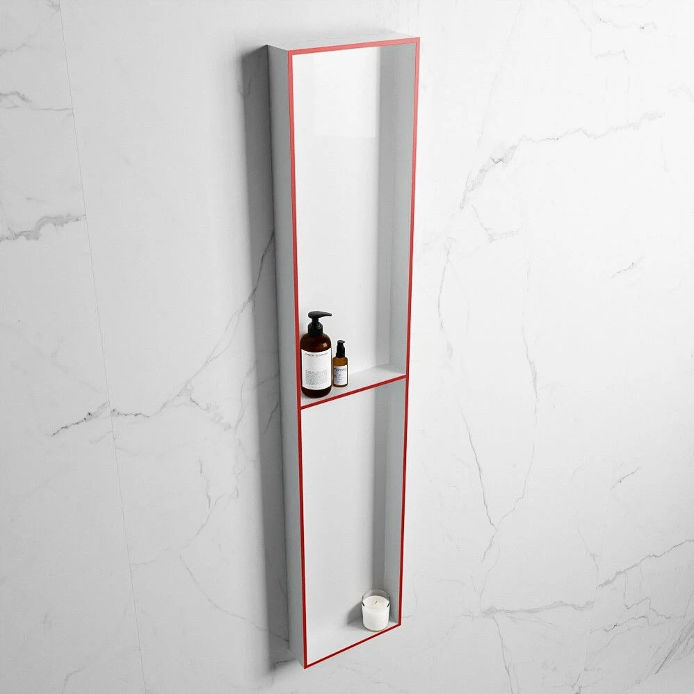 De nis heeft aan de buitenrand de kleur fire (rood) en aan de binnenkant de kleur talc (wit). Door deze vurige kleur is de nis een echte eyecatcher in je badkamer.