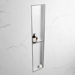 Deze nis komt in de kleur talc (wit) en urban (zwart). Deze urban kleur op de buitenrand geeft de nis een stoere en moderne look.