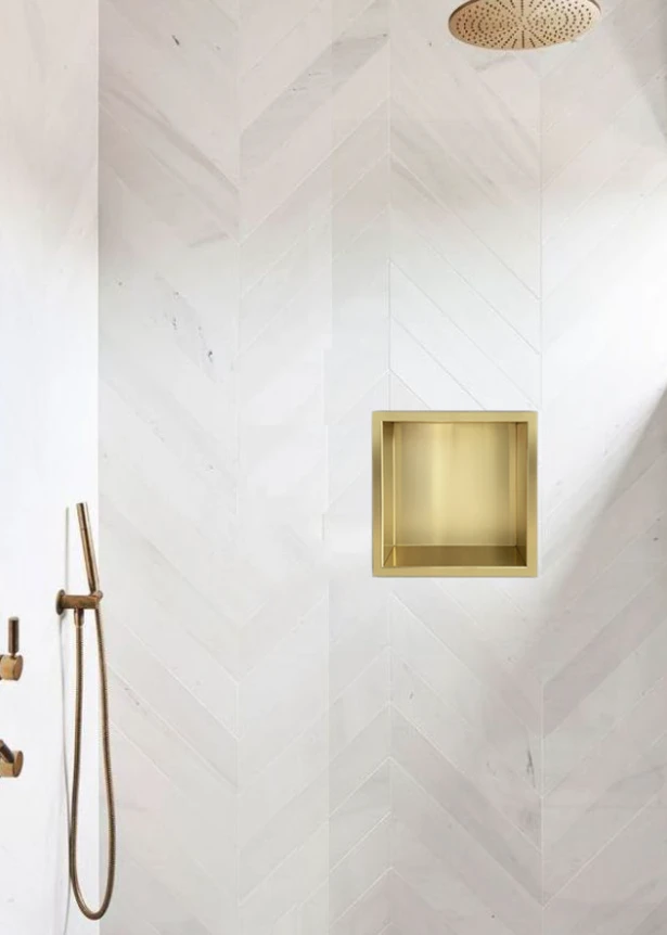 Combineer de Mueller Gold inbouwnis met andere badkameritems uit de Gold serie.