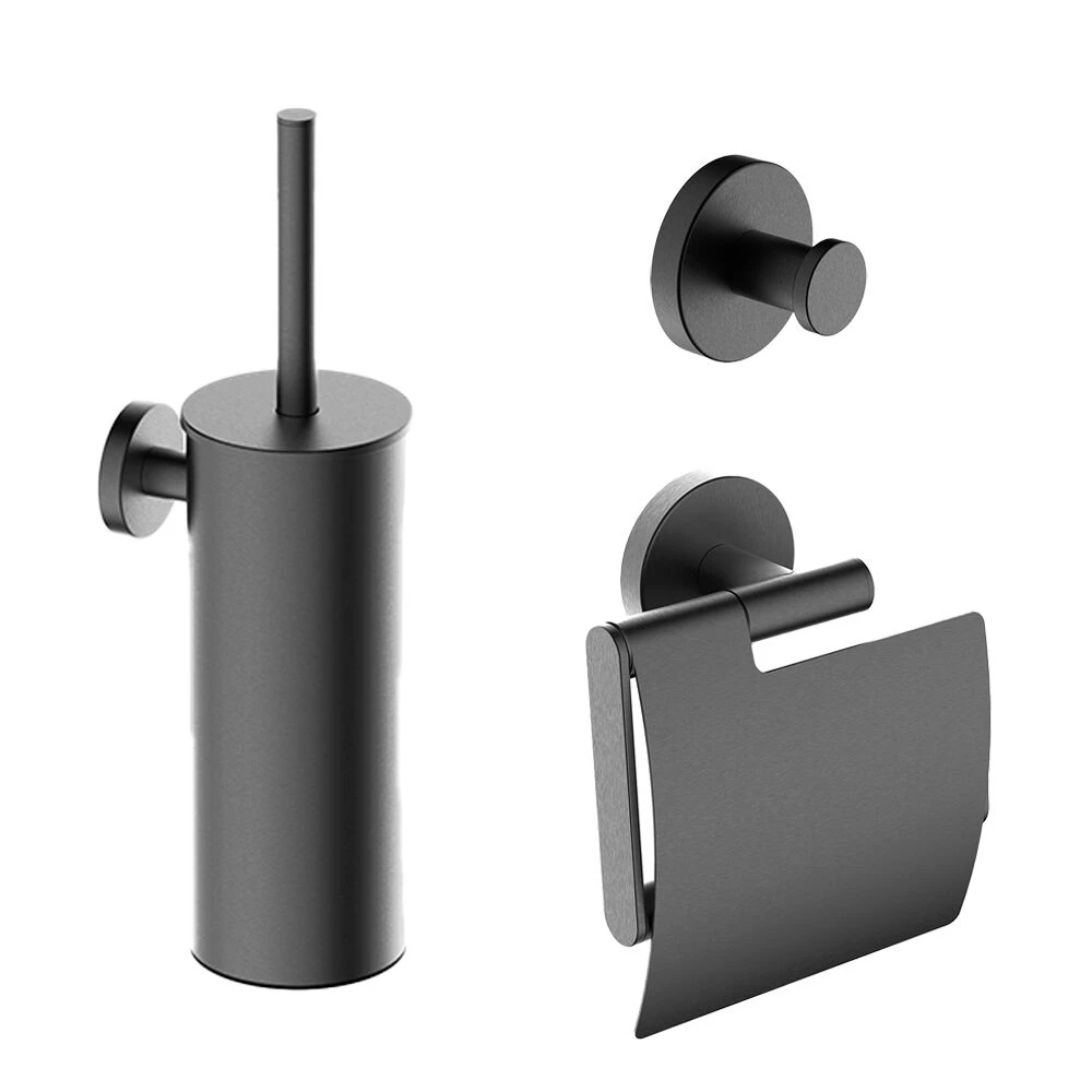 En hoe fijn is het om een complete set te kunnen shoppen? Zo hoef je niet alles los te bestellen, maar heb je het in één keer bij elkaar en weet je zeker dat de kleuren bij elkaar matchen. In deze toiletaccessoiresset zit een toiletrolhouder met klep, een toiletborstel en een handdoekhaak in de kleur verouderd ijzer – gunmetal.