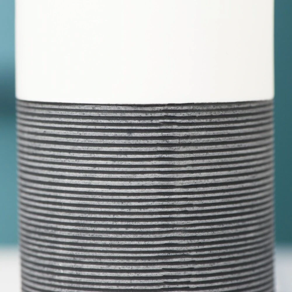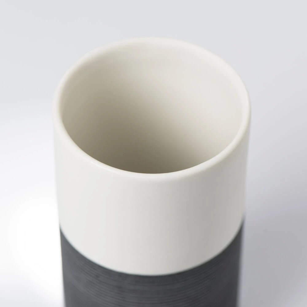 Deze beker is 13 cm hoog en heeft een doorsnede van 7.5 centimeter. De ribbeltjes in het porcelein geven de beker niet alleen een bijzondere uitstraling. ze zorgen ook dat de beker stevig in de hand ligt.