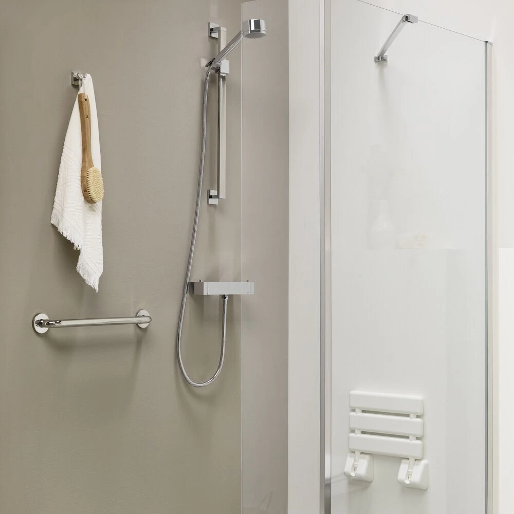 Het opklapbare doucehzitje uit de Tiger Libra serie is uitgevoerd in de kleur wit en biedt extra ondersteuning en comfort tijdens het douchen. Het zitje kan eenvoudig omhoog geklapt worden indien het artikel niet in gebruik is en de maximale belastbaarheid bedraagt 100 kg. De Libra serie bevat tevens een groot aantal aanvullende wandgrepen en douchezitjes.
