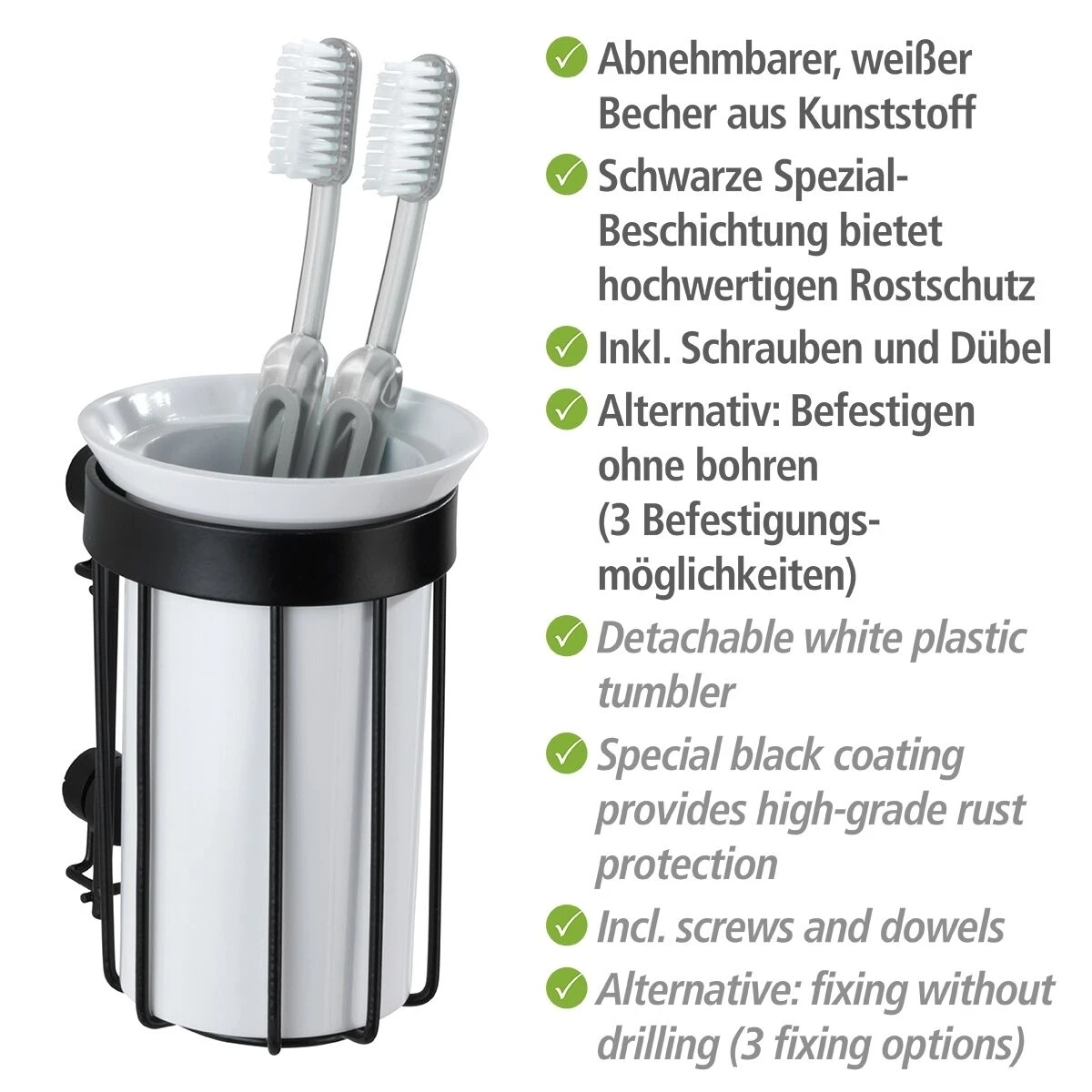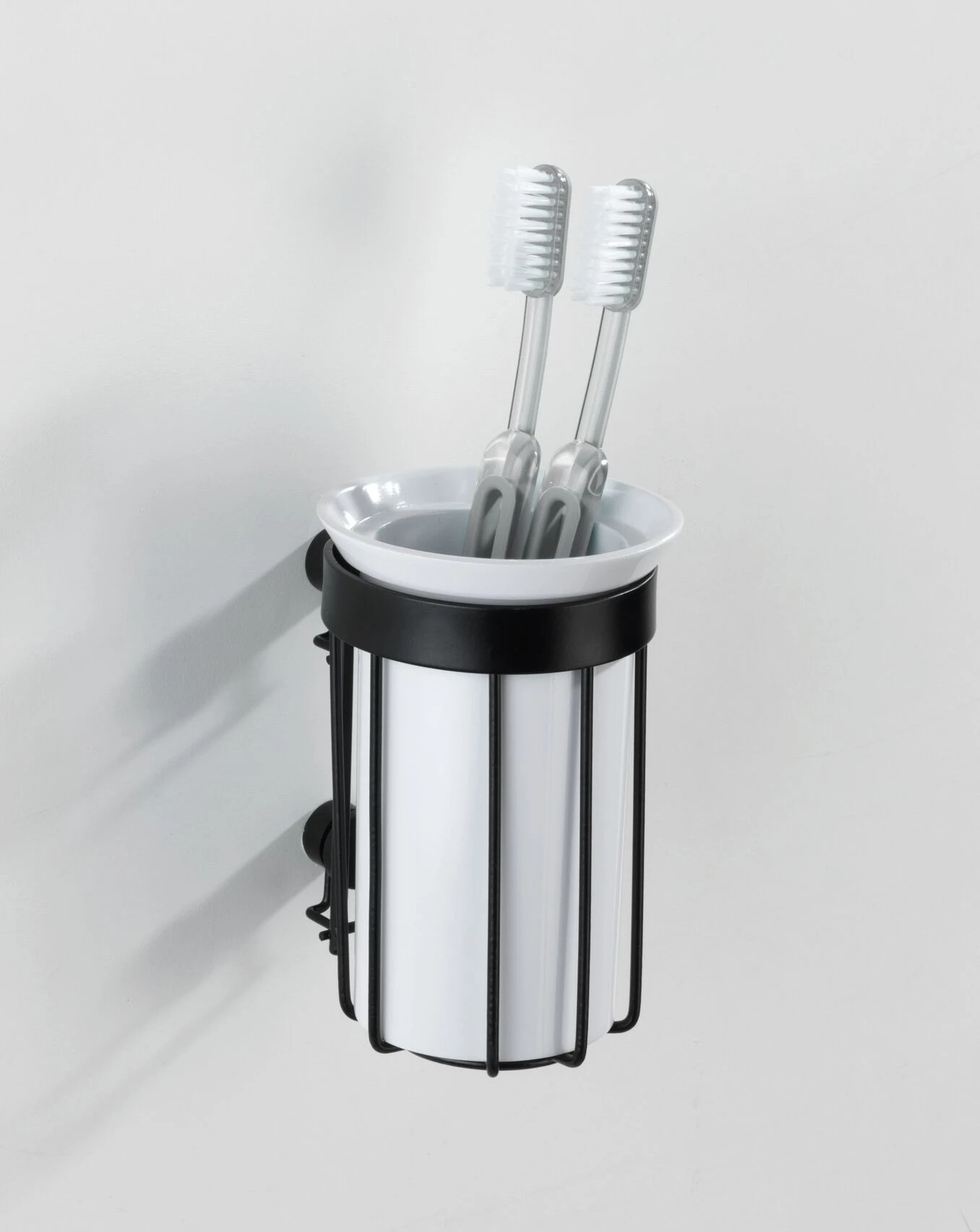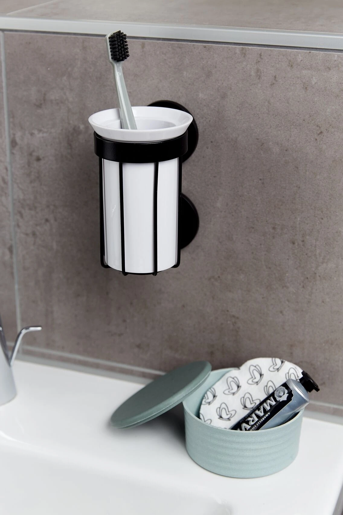 De tandenborstelhouder in industriële stijl biedt ruimte voor tandenborstels en tandpasta en houdt ze altijd binnen handbereik. De uitneembare, wit kunststof beker is gemakkelijk schoon te maken.