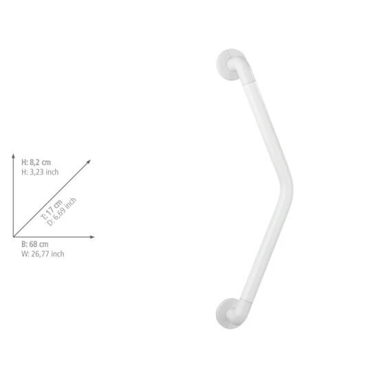 Hoge belastbaarheid: De stevige wandbeugel kan zonder aarzelen tot 100 kg worden belast en kan ook worden gebruikt als evenwichtssteun bij de wastafel of naast het toilet.