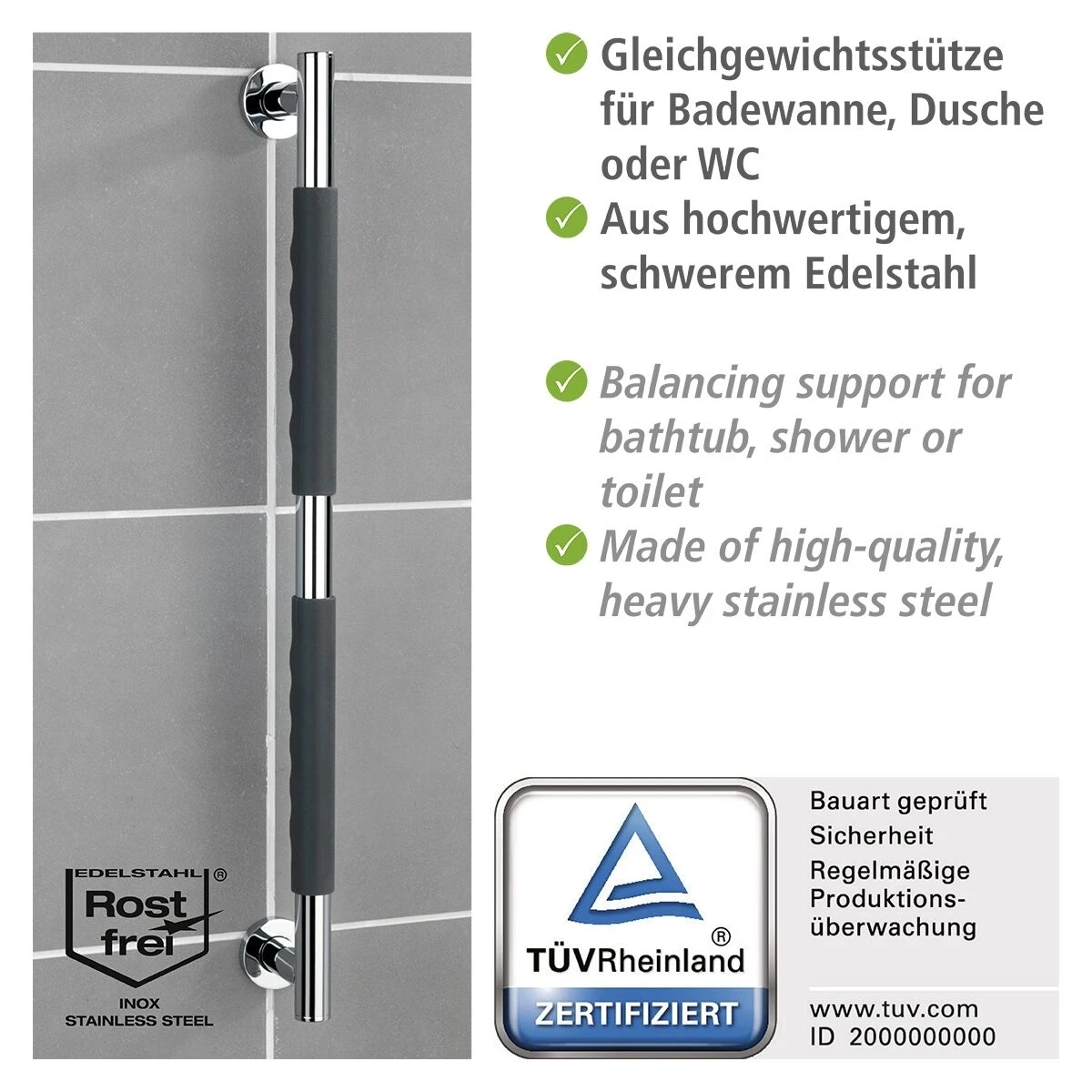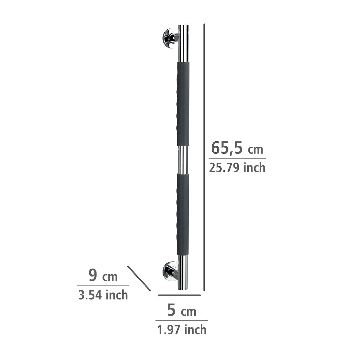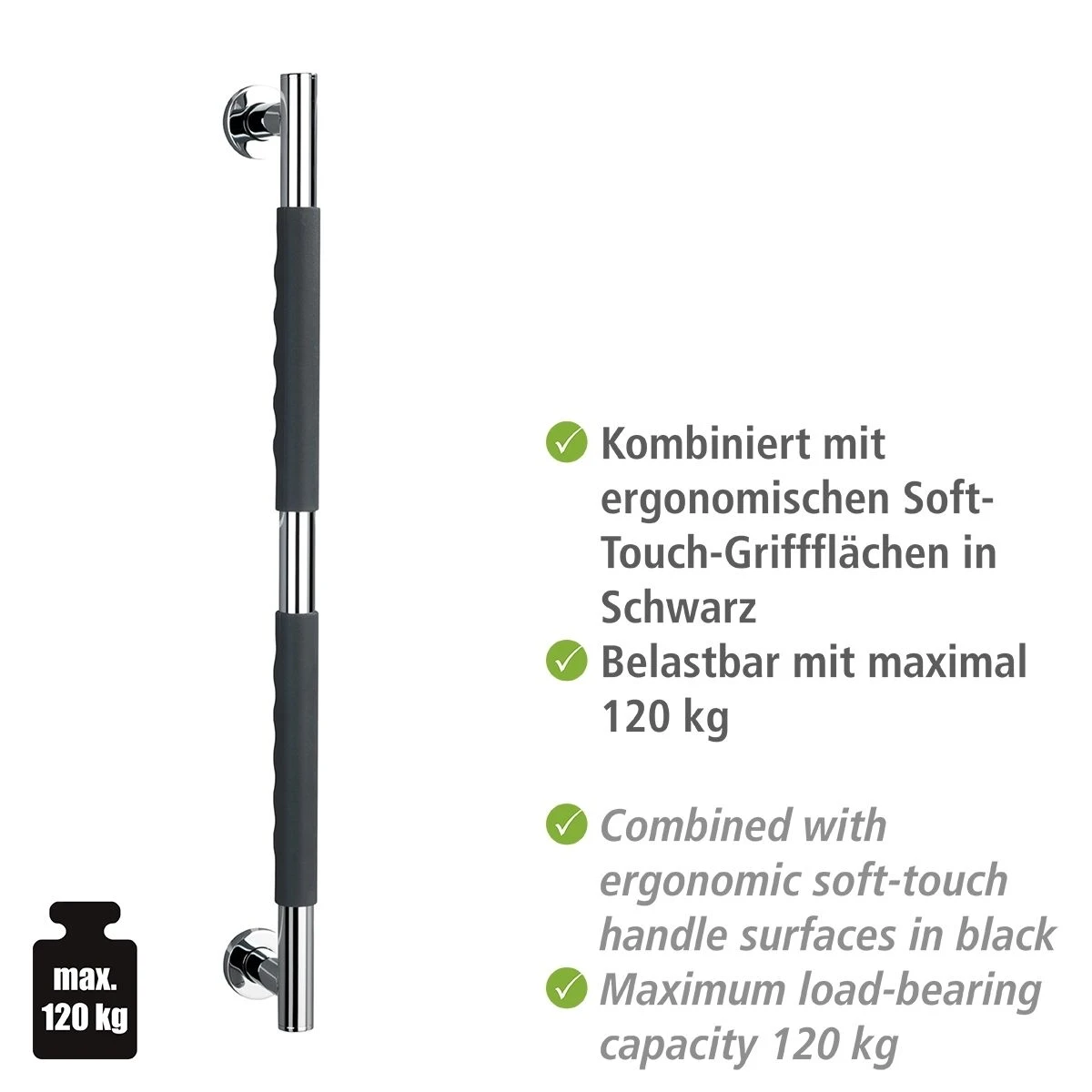 Zorg voor meer veiligheid in je badkamer met deze veiligheidsgreep van Wenko. De greep heeft een antisliplaag waardoor hij veilig is om vast te houden. Ook heeft de greep een softtouch oppervlak. De zwarte kleur zorgt voor een onopvallende en stijlvolle greep die in vrijwel elke badkamer mooi staat.